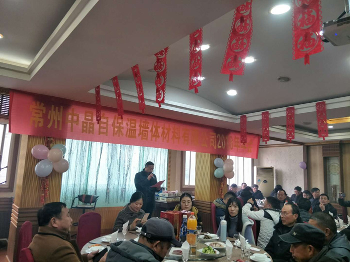 旺犬踏瑞去,金猪送福来!常州中晶自保温墙体材料有限公司隆重举行了2019年新年答谢会中晶自保温墙体材料全体员工人参加年会,整场年会在欢乐、喜庆的氛围中落下帷幕。预示着来年公司会更上一层楼!